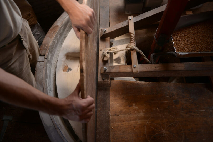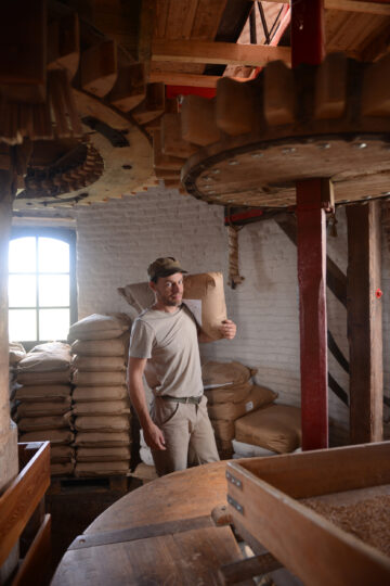 Op windkracht en Franse natuurstenen maalt de Artemeersmolen in België geteelde granen (bij voorkeur landrassen of oudere variëteiten) van lokale akkerbouwers tot biologische melen en bloem.