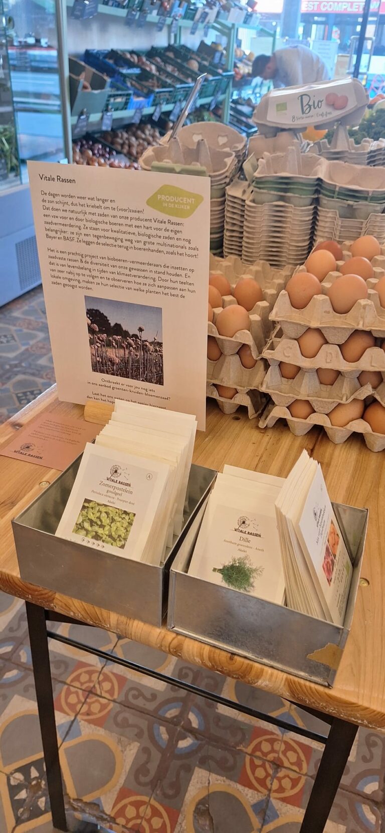 Dat doen we natuurlijk met zaden van onze producent Vitale Rassen: een vzw voor en door biologische boeren met een hart voor de eigen zaadvermeerdering. Ze staan voor kwalitatieve, biologische zaden en nog belangrijker: ze zijn een tegenbeweging weg van grote multinationals zoals Bayer en BASF. Ze leggen de selectie terug in boerenhanden, zoals het hoort!