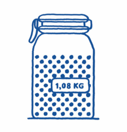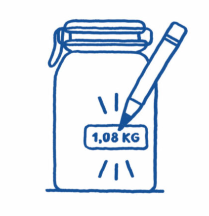 Aan de kassa wegen we je gevulde container(s) af en trekken het startgewicht van je meegenomen verpakking(en) eraf.